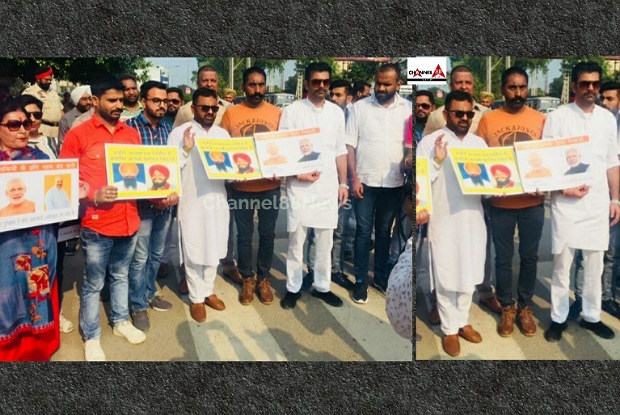 राजोआना की फांसी की सज़ा को उम्रकैद में बदलने के रोष में युवा शक्ति ने केंद्र की मोदी सरकार के खिलाफ़ किया प्रदर्शन।