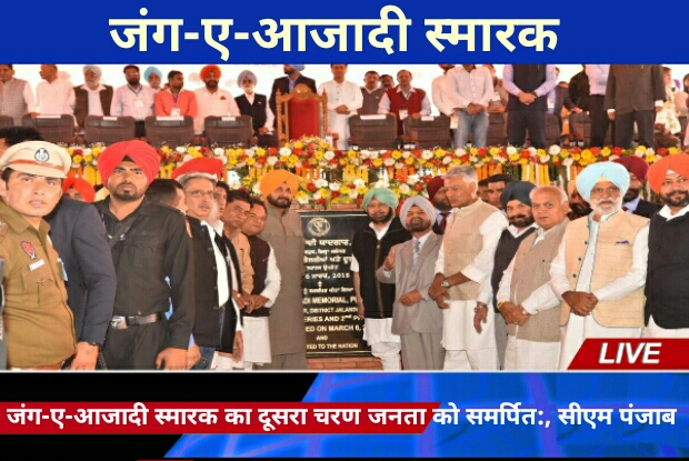 करतारपुर (पंजाब): माननीय मुख्यमंत्री पंजाब कैप्टन अमरिंदर सिंह ने आज यहां विश्व स्तरीय जंग-ए -आजादी स्मारक के दूसरे चरण को जनता को समर्पित करते हुये ।बजट में स्मारक के तीसरे पड़ाव को पूर्ण करने के लिए 25 करोड़ रुपए आवंटितक करने की घोषणा की है। इसके साथ ही मुख्यमंत्री ने स्मारक के पहले चरण के निर्माण के लिए बकाया 9.5 करोड़ रुपए की राशि को भी स्वीकृति दी।कैप्टन अमरिंदर सिंह ने इन प्रयासों की प्रशंसा की जो हमारी आने वाली पीढ़ीयों को भारतीय स्वतंत्रता संघर्ष के जज्बे संबंधी प्रेरित करता रहेगा।